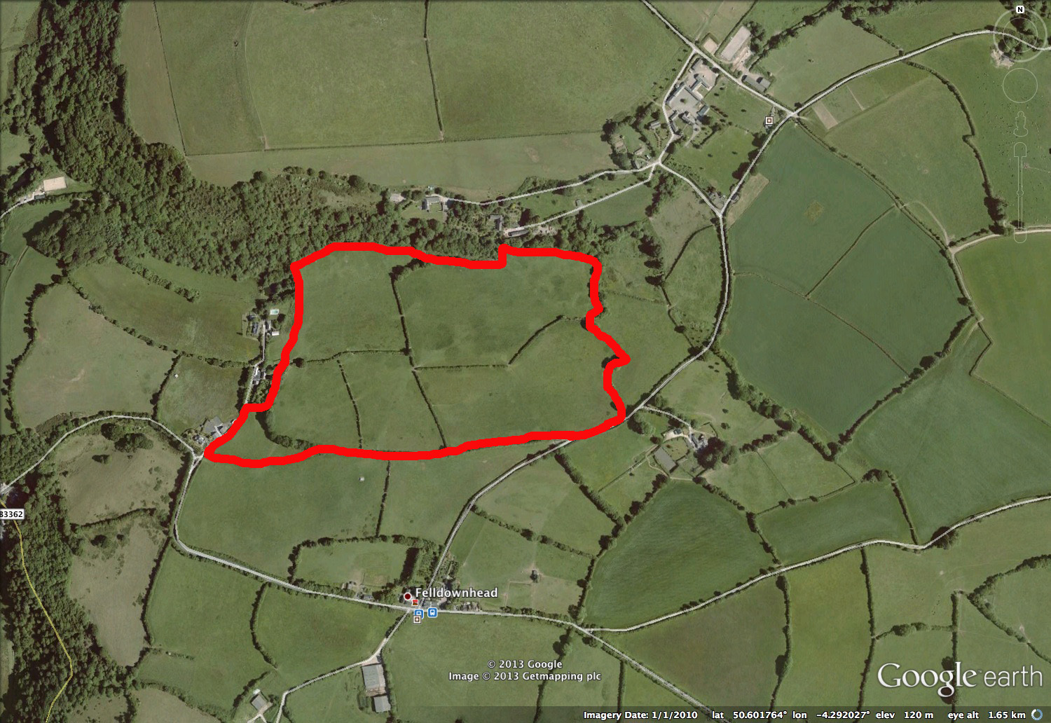 For ease of locating the proposed site (which is given as Bradstone Grange) I have drawn a map below to show the location which is northwest of Bradstone Grange and northwest of the Bradstone to Felldownhead road and oddly the majority of the land slopes towards the North!